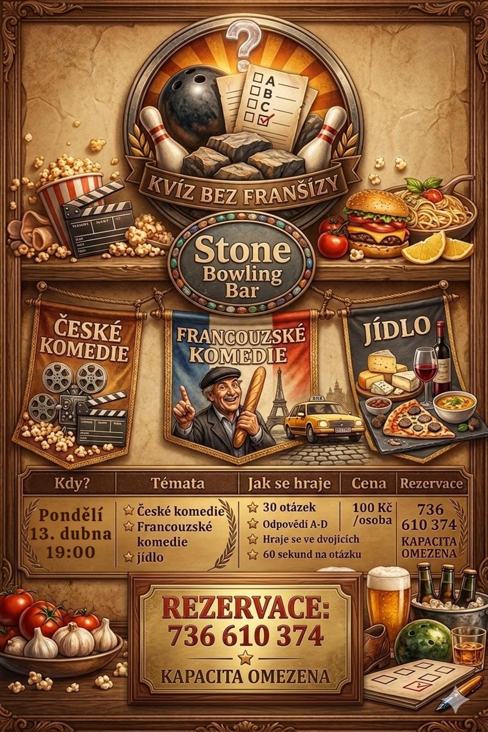 Přijďte se zúčastnit kvízu na téma francouzské a české komedie a jídlo.