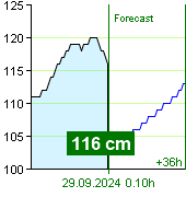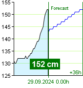 Closed river State of water at Kácov watermark post at 05.20 15.12.2025
